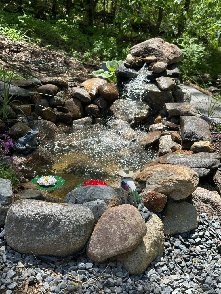 The second thing we had built was a water feature in our backyard! It is a small pump driven waterfall that goes into a small pond. It is so relaxing listening to the falling water. I was clueless how to take care of this. But we have learned as we go. We found that mosquitoes are drawn to ponds and will lay their larvae. One day, I noticed some wiggly things in the water and at first, I was excited. I thought maybe a dragonfly laid eggs, because of the number of dragonflies we have in the yard. But, NOPE, no such luck! I looked it up and found out that they were mosquitoes! DARN IT!!!!!!! So again, I looked up what we could do without using any harmful chemicals and found out that we need to use a natural bacterium called- Bacillus Thuringiensis. This is not harmful to humans or wildlife. They are sold online and in Nurseries.